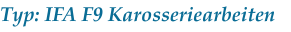 Typ: IFA F9 Karosseriearbeiten Typ: IFA F8 Cabrio Typ: IFA F8 Limosine-Karosse bezogen Typ: DKW-Rennwagen Typ: DKW-Rennwagen Typ: IFA F8 Cabrio IFA Wartburg Camping Typ: DKW F8 Cabrio